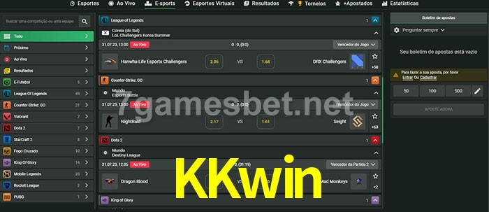 O KKwin oferece uma grande seleção de opções de apostas em e-sports com probabilidades competitivas
